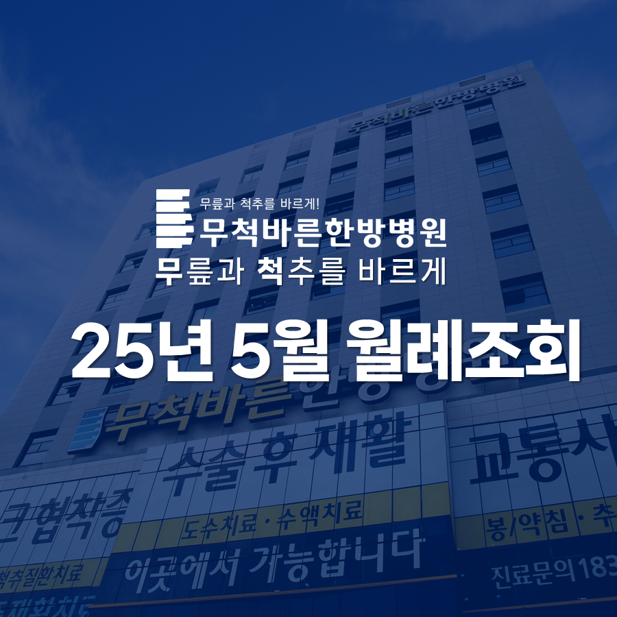 이사장님의 말씀을 끝으로 2025년 5월 월례 조회는 마무리되었습니다. 무척바른한방병원은 2025년에도 늘 환자분들의 입장에서 생각하며, 병원을 나서실 때 조금 더 가볍고 편안한 마음으로 돌아가실 수 있도록 최선을 다하겠습니다.