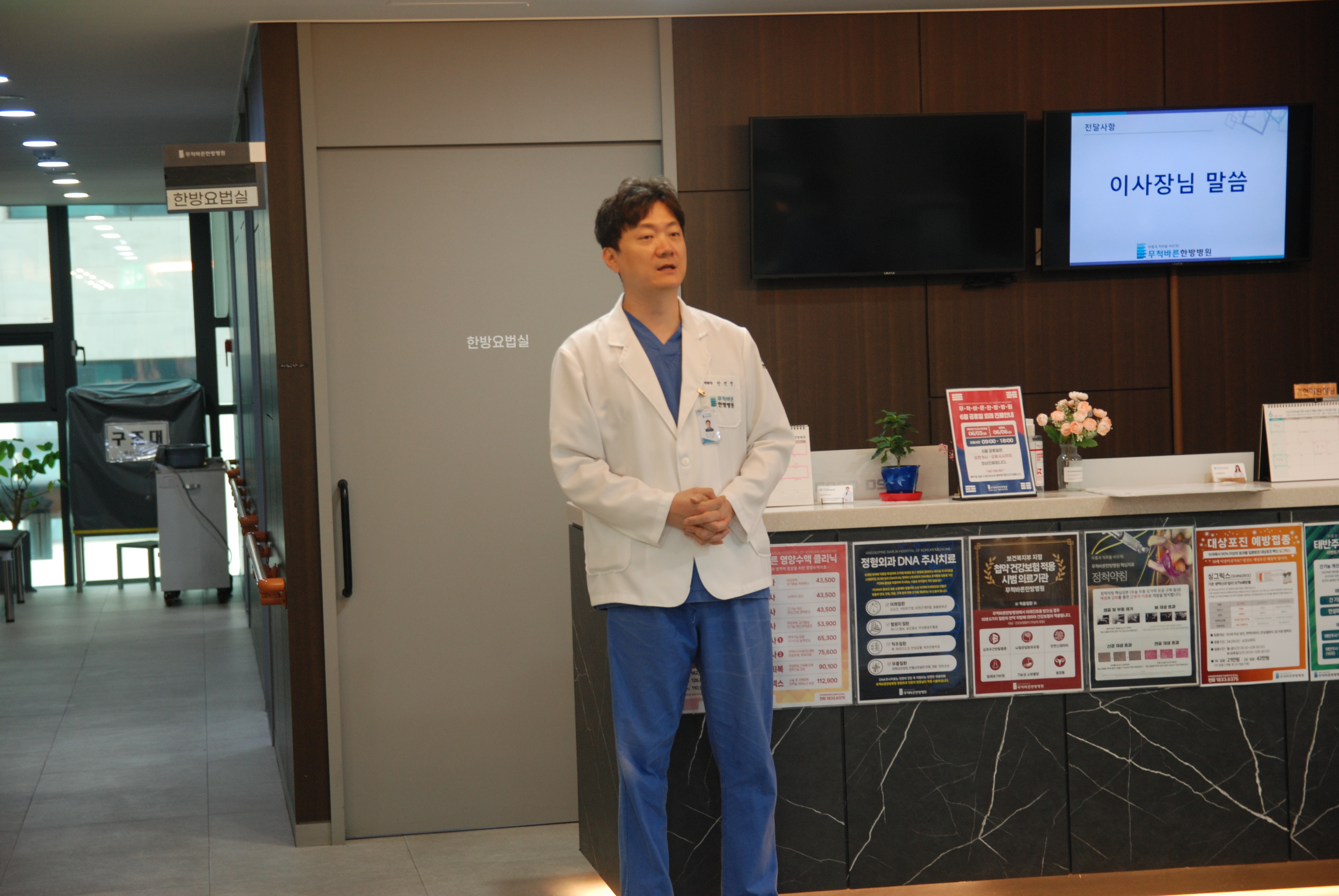 오는 6월 2일은 무척바른한방병원이 한 달의 시작을 다짐하고 전 직원이 함께 성장하는 의미 있는 월례 조회가 개최되었는데요. 이번 월례 조회는 다음과 같은 순서로 화기애애하고 따뜻한 분위기 속에서 진행되었습니다.
