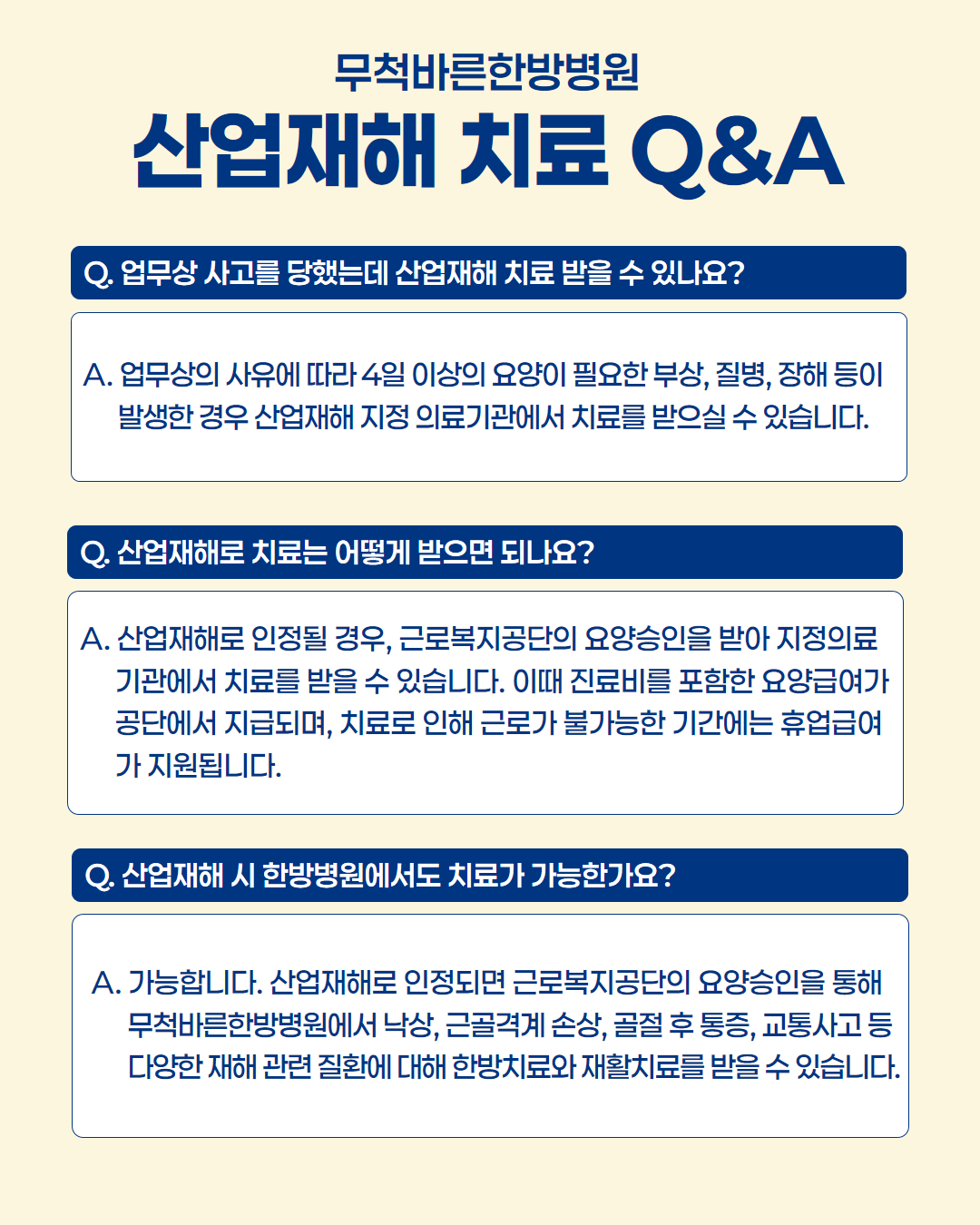 Q. 산업재해 시 한방병원에서도 치료가 가능한가요?