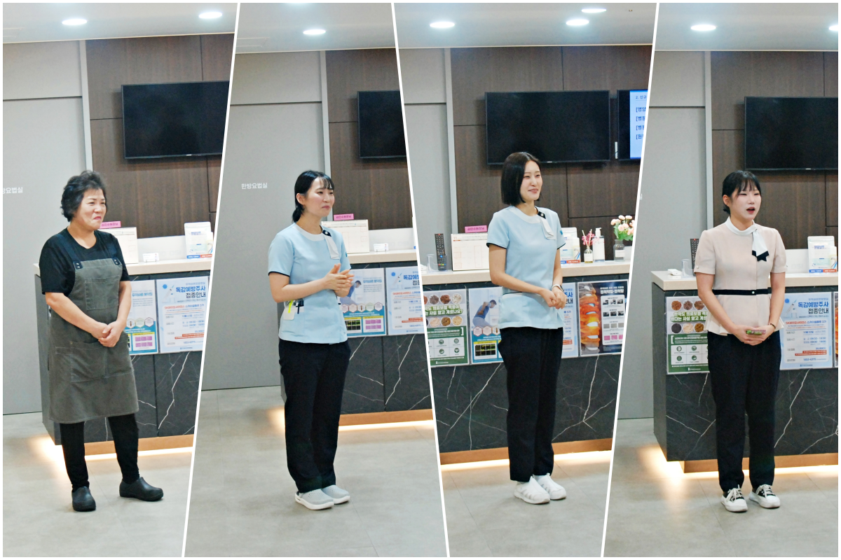 새롭게 합류하신 네 분 모두 환자분들의 건강과 편의를 위해 각자의 자리에서 최선을 다해 주실 것을 약속해 주셨는데요. 무척바른한방병원의 따뜻한 가족으로서 함께 성장하며 앞으로의 활약이 더욱 기대되는 순간이었습니다.